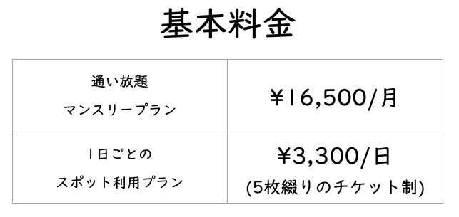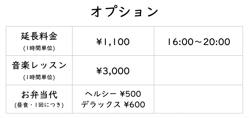 ※最大19:00まで滞在可能ですが、現在は土日のレッスンが非常に多くなっているため平日のみの開校とさせて頂いています。休業日は開校カレンダーを参照ください。